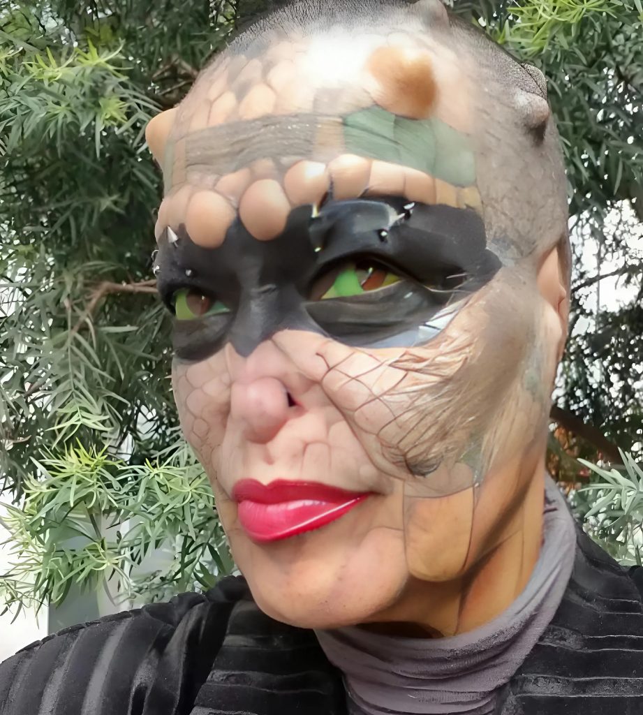 Nechala si celé tělo pokrýt tetováním připomínajícím šupiny hadů a ještěrů.