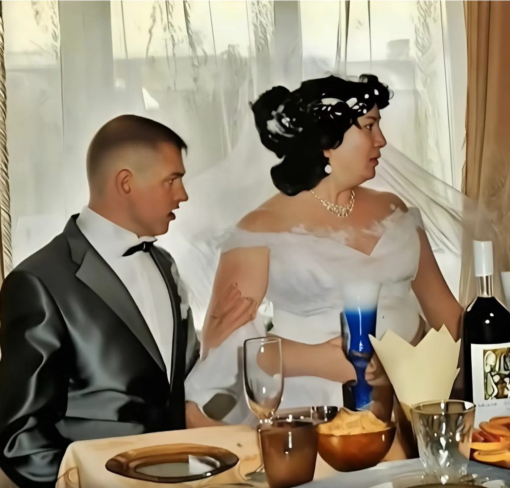 Po jejím boku stál ženich, v perfektně padnoucím obleku, se sevřeným, ale šťastným úsměvem.